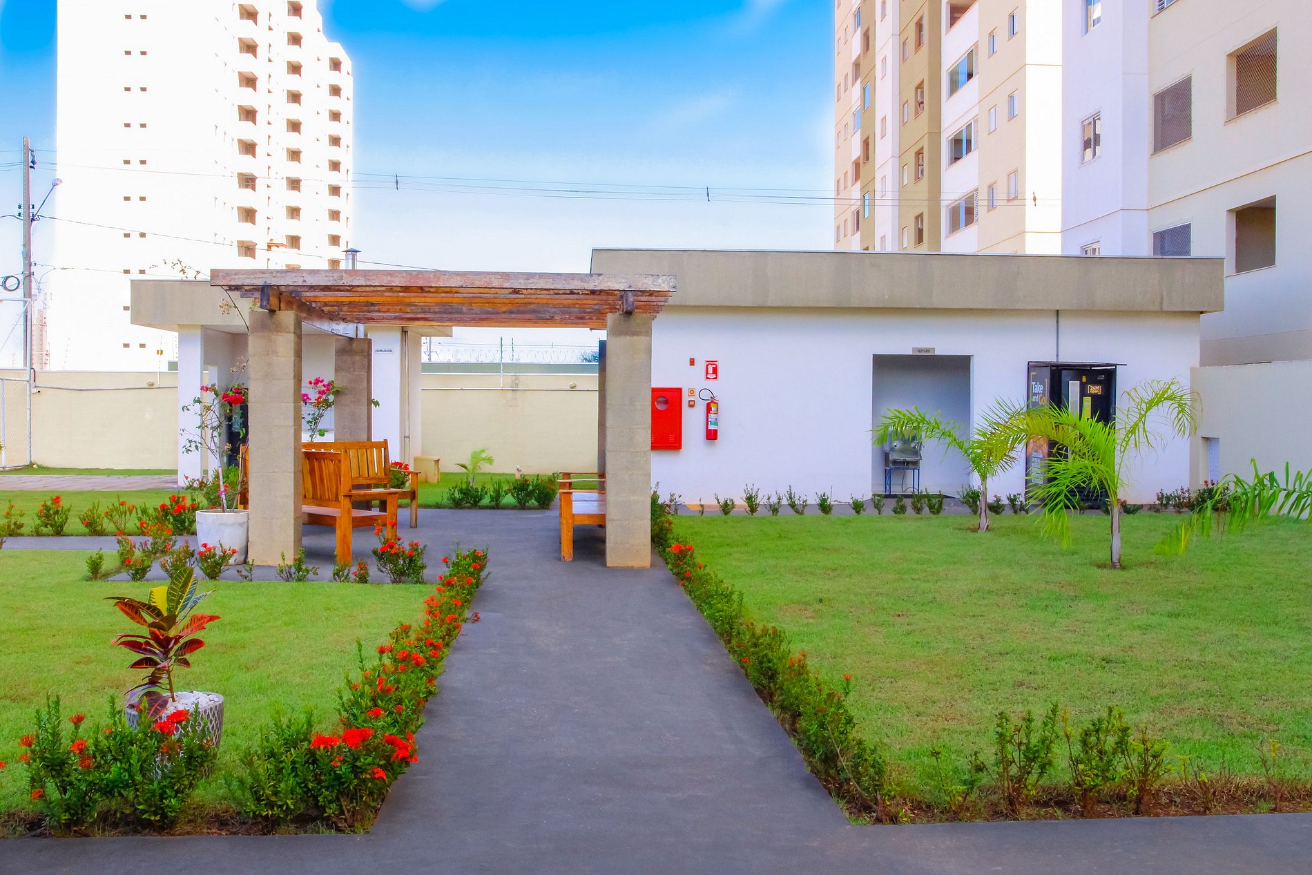O apartamento está localizado em um condomínio familiar, onde apresenta áreas de lazer em seu espaço interno de uso aos hóspedes do Loft Felau, sendo elas: piscina, academia, espaços kids, portaria 24 horas e um estacionamento coberto, gratuito e monitorado no subsolo. Além dos espaços mencionados, possui também churrasqueiras (quiosque) e um salão de festa, sendo estes de administração do próprio condomínio, que para seu uso, faz-se necessário o agendamento e pagamento de uma taxa extra.